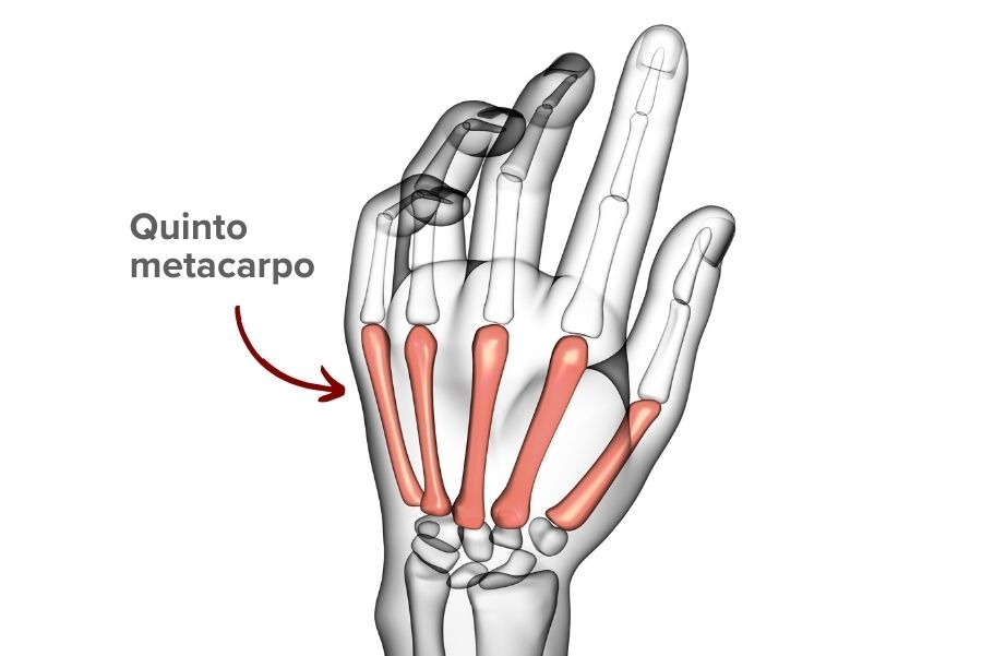 Il quinto metacarpo è l’osso lungo che collega le ossa del polso al dito mignolo. Quando si rompe, di solito si crea una deformità a livello della nocca, spesso accompagnata da dolore e difficoltà a stringere il pugno.